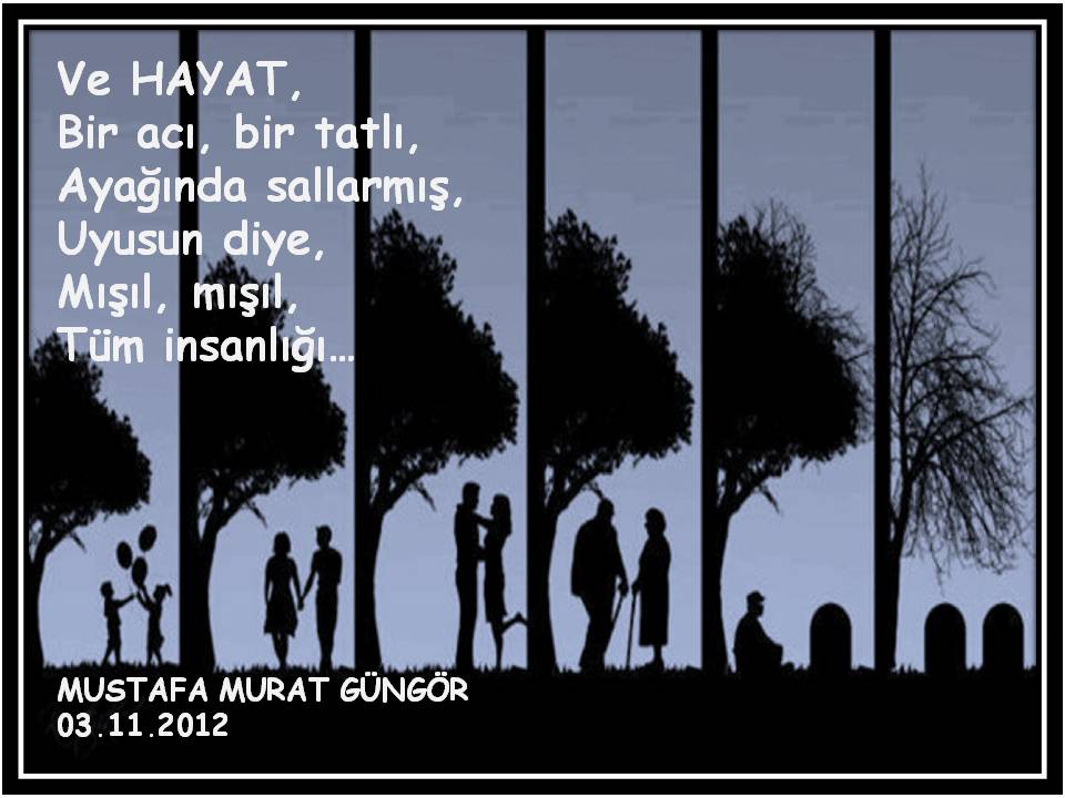 Bir biri ardına, devrilen her yıl, insandan, bir şeyler alıp, götürürken, birçok şeyleri de getirip, koyar ömür heybesine. Kaybettiklerimiz uğruna, kazandığımız ve ileriki yaşantımızda, bize fayda sağlayacak her şey TECRÜBEDİR. Her dert, her sıkıntı, her üzüntü, her kayıp, hayatın bize bir şeyler katma, bir şeyler anlatma çabasıdır. Bu çabaya kızarak, kırılarak, küserek, kendi kabuğumuza çekilerek değil, sebebini sorgulayarak, eksikliklerimizi gidererek, fazlalıklarımızı törpüleyerek ve bir daha aynı duruma düşmemek için, evvelce attığımız yanlış adımları, tekrarlamaktan vazgeçerek, hayata verdiğimiz her cevap TECRÜBEDİR… TECRÜBE acıdır ve aynı zamanda paha biçilmezdir zira onu kazanabilmek adına, bir şeyi kaybetmek, bir şeyden vazgeçmek, bir derde katlanmak, bir sıkıntıyı aşmak, kısacası büyük bir bedel ödemek zorundayızdır. Ve zamanla tecrübelerimiz arttıkça, hayatı ve karşımıza çıkarttığı, insanları, olayları ve durumları, daha iyi anlayıp, perde arkasındakileri daha iyi görmeye başlarız… Yeter ki hayatın bizi olgunlaştırmak, kendimize getirmek, dünyaya geliş amacımızı bize hatırlatmak için karşımıza çıkardıklarına, İyi, kötü, hoş, nahoş, demeden, hoş geldin deyip, buyur edebilelim başköşeye ve yaşamış olduğumuz her şeye sevgiyle şükredebilelim… Bu günüme gelmemde, bu günkü ben olmamda, hayatımda kazandığım ve boncuk, boncuk, TECRÜBE tespihime eklediğim, her bir tecrübede, emeği geçen tüm güzel canlara, sevgili aileme, akrabalarıma, dostlarıma, arkadaşlarıma, hayatımın her hangi bir diliminde, yolumuzun kesiştiği güzel yürekli, güzel insanlara, çok teşekkür ediyorum. Hayatıma kattıklarınız için teşekkürler, Bana yaşattıklarınız için teşekkürler, iyi ki varsınız, iyi ki sizleri tanıdım, sağ olun, var olun… Her dem sevgi, dostluk ve muhabbetle… Mustafa Murat Güngör 23.05.2014 (c) Bu yazının her türlü telif hakkı yazarın kendisine ve/veya temsilcilerine aittir. Yazıların izin alınmadan kopyalanması ve kullanılması 5846 sayılı Fikir ve Sanat Eserleri Yasasına göre suçtur.