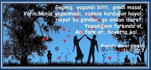 Bir biri ardına, devrilen her yıl, insandan, bir şeyler alıp, götürürken, birçok şeyleri de getirip, koyar ömür heybesine. Kaybettiklerimiz uğruna, kazandığımız ve ileriki yaşantımızda, bize fayda sağlayacak her şey TECRÜBEDİR. Her dert, her sıkıntı, her üzüntü, her kayıp, hayatın bize bir şeyler katma, bir şeyler anlatma çabasıdır. Bu çabaya kızarak, kırılarak, küserek, kendi kabuğumuza çekilerek değil, sebebini sorgulayarak, eksikliklerimizi gidererek, fazlalıklarımızı törpüleyerek ve bir daha aynı duruma düşmemek için, evvelce attığımız yanlış adımları, tekrarlamaktan vazgeçerek, hayata verdiğimiz her cevap TECRÜBEDİR… TECRÜBE acıdır ve aynı zamanda paha biçilmezdir zira onu kazanabilmek adına, bir şeyi kaybetmek, bir şeyden vazgeçmek, bir derde katlanmak, bir sıkıntıyı aşmak, kısacası büyük bir bedel ödemek zorundayızdır. Ve zamanla tecrübelerimiz arttıkça, hayatı ve karşımıza çıkarttığı, insanları, olayları ve durumları, daha iyi anlayıp, perde arkasındakileri daha iyi görmeye başlarız… Yeter ki hayatın bizi olgunlaştırmak, kendimize getirmek, dünyaya geliş amacımızı bize hatırlatmak için karşımıza çıkardıklarına, İyi, kötü, hoş, nahoş, demeden, hoş geldin deyip, buyur edebilelim başköşeye ve yaşamış olduğumuz her şeye sevgiyle şükredebilelim… Bu günüme gelmemde, bu günkü ben olmamda, hayatımda kazandığım ve boncuk, boncuk, TECRÜBE tespihime eklediğim, her bir tecrübede, emeği geçen tüm güzel canlara, sevgili aileme, akrabalarıma, dostlarıma, arkadaşlarıma, hayatımın her hangi bir diliminde, yolumuzun kesiştiği güzel yürekli, güzel insanlara, çok teşekkür ediyorum. Hayatıma kattıklarınız için teşekkürler, Bana yaşattıklarınız için teşekkürler, iyi ki varsınız, iyi ki sizleri tanıdım, sağ olun, var olun… Her dem sevgi, dostluk ve muhabbetle… Mustafa Murat Güngör 23.05.2014 (c) Bu yazının her türlü telif hakkı yazarın kendisine ve/veya temsilcilerine aittir. Yazıların izin alınmadan kopyalanması ve kullanılması 5846 sayılı Fikir ve Sanat Eserleri Yasasına göre suçtur.
