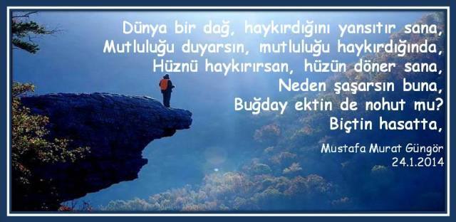 Dünya bir dağ1620572_767306123309552_276545528_nDünya bir dağ, haykırdığını yansıtır sana,
