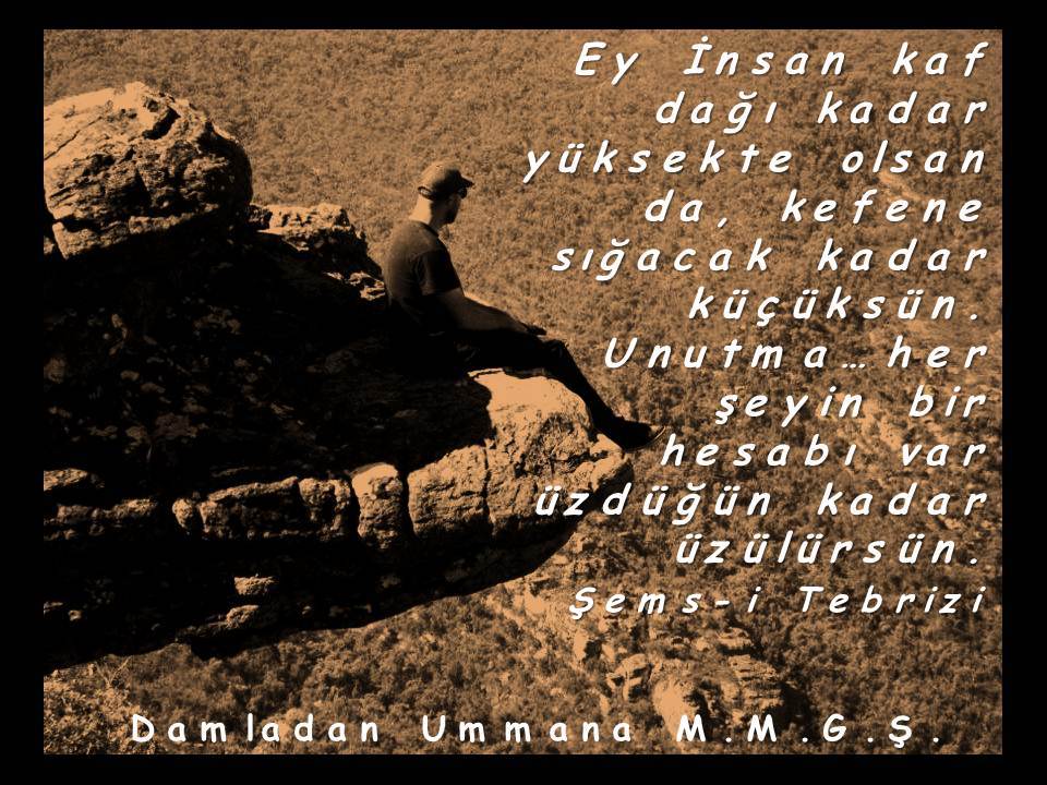 Ey İnsan kaf dağı kadar yüksekte olsan da, kefene sığacak kadar küçüksün.Unutma…her şeyin bir hesabı var üzdüğün kadar üzülürsün.