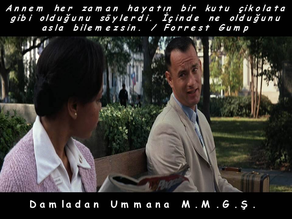 Annem her zaman hayatın bir kutu çikolata gibi olduğunu söylerdi. İçinde ne olduğunu asla bilemezsin. / Forrest Gump