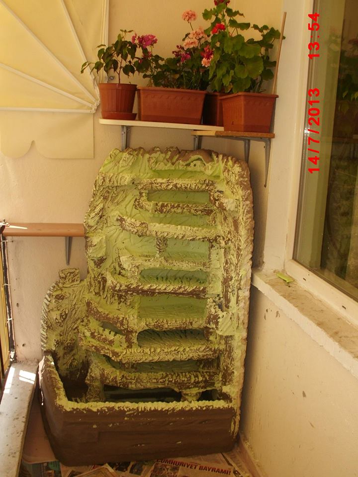 Netice itibariyle, emeğime deydi, ilk resimde gördüğünüz boş ve çıplak balkon, şelale ve çiçeklerimle güzel bir köşe oldu. Beton binanın içinde, şelaleli bir bahçe yaptım tam çay, kahve ve kitap keyfi yapma mekanı oldu. Su terapisi de cabası. Tavsiye ederim dostlarım…