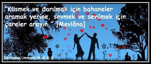 Küsmek ve darılmak için bahaneler aramak yerine, sevmek ve sevilmek için çareIer arayın.