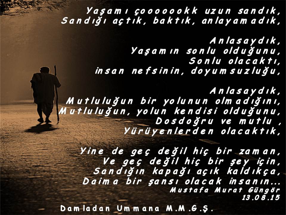 Bir biri ardına, devrilen her yıl, insandan, bir şeyler alıp, götürürken, birçok şeyleri de getirip, koyar ömür heybesine. Kaybettiklerimiz uğruna, kazandığımız ve ileriki yaşantımızda, bize fayda sağlayacak her şey TECRÜBEDİR. Her dert, her sıkıntı, her üzüntü, her kayıp, hayatın bize bir şeyler katma, bir şeyler anlatma çabasıdır. Bu çabaya kızarak, kırılarak, küserek, kendi kabuğumuza çekilerek değil, sebebini sorgulayarak, eksikliklerimizi gidererek, fazlalıklarımızı törpüleyerek ve bir daha aynı duruma düşmemek için, evvelce attığımız yanlış adımları, tekrarlamaktan vazgeçerek, hayata verdiğimiz her cevap TECRÜBEDİR… TECRÜBE acıdır ve aynı zamanda paha biçilmezdir zira onu kazanabilmek adına, bir şeyi kaybetmek, bir şeyden vazgeçmek, bir derde katlanmak, bir sıkıntıyı aşmak, kısacası büyük bir bedel ödemek zorundayızdır. Ve zamanla tecrübelerimiz arttıkça, hayatı ve karşımıza çıkarttığı, insanları, olayları ve durumları, daha iyi anlayıp, perde arkasındakileri daha iyi görmeye başlarız… Yeter ki hayatın bizi olgunlaştırmak, kendimize getirmek, dünyaya geliş amacımızı bize hatırlatmak için karşımıza çıkardıklarına, İyi, kötü, hoş, nahoş, demeden, hoş geldin deyip, buyur edebilelim başköşeye ve yaşamış olduğumuz her şeye sevgiyle şükredebilelim… Bu günüme gelmemde, bu günkü ben olmamda, hayatımda kazandığım ve boncuk, boncuk, TECRÜBE tespihime eklediğim, her bir tecrübede, emeği geçen tüm güzel canlara, sevgili aileme, akrabalarıma, dostlarıma, arkadaşlarıma, hayatımın her hangi bir diliminde, yolumuzun kesiştiği güzel yürekli, güzel insanlara, çok teşekkür ediyorum. Hayatıma kattıklarınız için teşekkürler, Bana yaşattıklarınız için teşekkürler, iyi ki varsınız, iyi ki sizleri tanıdım, sağ olun, var olun… Her dem sevgi, dostluk ve muhabbetle… Mustafa Murat Güngör 23.05.2014 (c) Bu yazının her türlü telif hakkı yazarın kendisine ve/veya temsilcilerine aittir. Yazıların izin alınmadan kopyalanması ve kullanılması 5846 sayılı Fikir ve Sanat Eserleri Yasasına göre suçtur.