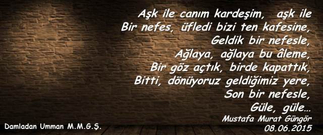 Bir biri ardına, devrilen her yıl, insandan, bir şeyler alıp, götürürken, birçok şeyleri de getirip, koyar ömür heybesine. Kaybettiklerimiz uğruna, kazandığımız ve ileriki yaşantımızda, bize fayda sağlayacak her şey TECRÜBEDİR. Her dert, her sıkıntı, her üzüntü, her kayıp, hayatın bize bir şeyler katma, bir şeyler anlatma çabasıdır. Bu çabaya kızarak, kırılarak, küserek, kendi kabuğumuza çekilerek değil, sebebini sorgulayarak, eksikliklerimizi gidererek, fazlalıklarımızı törpüleyerek ve bir daha aynı duruma düşmemek için, evvelce attığımız yanlış adımları, tekrarlamaktan vazgeçerek, hayata verdiğimiz her cevap TECRÜBEDİR… TECRÜBE acıdır ve aynı zamanda paha biçilmezdir zira onu kazanabilmek adına, bir şeyi kaybetmek, bir şeyden vazgeçmek, bir derde katlanmak, bir sıkıntıyı aşmak, kısacası büyük bir bedel ödemek zorundayızdır. Ve zamanla tecrübelerimiz arttıkça, hayatı ve karşımıza çıkarttığı, insanları, olayları ve durumları, daha iyi anlayıp, perde arkasındakileri daha iyi görmeye başlarız… Yeter ki hayatın bizi olgunlaştırmak, kendimize getirmek, dünyaya geliş amacımızı bize hatırlatmak için karşımıza çıkardıklarına, İyi, kötü, hoş, nahoş, demeden, hoş geldin deyip, buyur edebilelim başköşeye ve yaşamış olduğumuz her şeye sevgiyle şükredebilelim… Bu günüme gelmemde, bu günkü ben olmamda, hayatımda kazandığım ve boncuk, boncuk, TECRÜBE tespihime eklediğim, her bir tecrübede, emeği geçen tüm güzel canlara, sevgili aileme, akrabalarıma, dostlarıma, arkadaşlarıma, hayatımın her hangi bir diliminde, yolumuzun kesiştiği güzel yürekli, güzel insanlara, çok teşekkür ediyorum. Hayatıma kattıklarınız için teşekkürler, Bana yaşattıklarınız için teşekkürler, iyi ki varsınız, iyi ki sizleri tanıdım, sağ olun, var olun… Her dem sevgi, dostluk ve muhabbetle… Mustafa Murat Güngör 23.05.2014 (c) Bu yazının her türlü telif hakkı yazarın kendisine ve/veya temsilcilerine aittir. Yazıların izin alınmadan kopyalanması ve kullanılması 5846 sayılı Fikir ve Sanat Eserleri Yasasına göre suçtur.