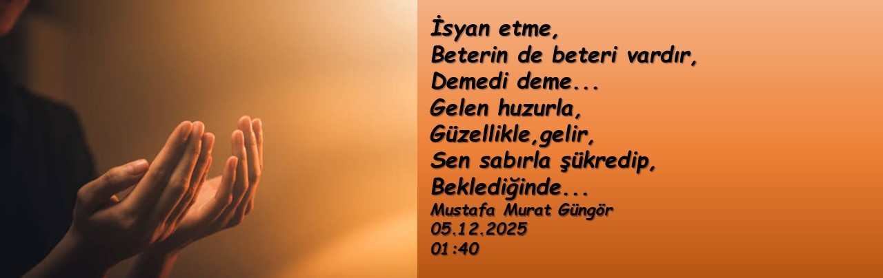 Bir biri ardına, devrilen her yıl, insandan, bir şeyler alıp, götürürken, birçok şeyleri de getirip, koyar ömür heybesine. Kaybettiklerimiz uğruna, kazandığımız ve ileriki yaşantımızda, bize fayda sağlayacak her şey TECRÜBEDİR. Her dert, her sıkıntı, her üzüntü, her kayıp, hayatın bize bir şeyler katma, bir şeyler anlatma çabasıdır. Bu çabaya kızarak, kırılarak, küserek, kendi kabuğumuza çekilerek değil, sebebini sorgulayarak, eksikliklerimizi gidererek, fazlalıklarımızı törpüleyerek ve bir daha aynı duruma düşmemek için, evvelce attığımız yanlış adımları, tekrarlamaktan vazgeçerek, hayata verdiğimiz her cevap TECRÜBEDİR… TECRÜBE acıdır ve aynı zamanda paha biçilmezdir zira onu kazanabilmek adına, bir şeyi kaybetmek, bir şeyden vazgeçmek, bir derde katlanmak, bir sıkıntıyı aşmak, kısacası büyük bir bedel ödemek zorundayızdır. Ve zamanla tecrübelerimiz arttıkça, hayatı ve karşımıza çıkarttığı, insanları, olayları ve durumları, daha iyi anlayıp, perde arkasındakileri daha iyi görmeye başlarız… Yeter ki hayatın bizi olgunlaştırmak, kendimize getirmek, dünyaya geliş amacımızı bize hatırlatmak için karşımıza çıkardıklarına, İyi, kötü, hoş, nahoş, demeden, hoş geldin deyip, buyur edebilelim başköşeye ve yaşamış olduğumuz her şeye sevgiyle şükredebilelim… Bu günüme gelmemde, bu günkü ben olmamda, hayatımda kazandığım ve boncuk, boncuk, TECRÜBE tespihime eklediğim, her bir tecrübede, emeği geçen tüm güzel canlara, sevgili aileme, akrabalarıma, dostlarıma, arkadaşlarıma, hayatımın her hangi bir diliminde, yolumuzun kesiştiği güzel yürekli, güzel insanlara, çok teşekkür ediyorum. Hayatıma kattıklarınız için teşekkürler, Bana yaşattıklarınız için teşekkürler, iyi ki varsınız, iyi ki sizleri tanıdım, sağ olun, var olun… Her dem sevgi, dostluk ve muhabbetle… Mustafa Murat Güngör 23.05.2014 (c) Bu yazının her türlü telif hakkı yazarın kendisine ve/veya temsilcilerine aittir. Yazıların izin alınmadan kopyalanması ve kullanılması 5846 sayılı Fikir ve Sanat Eserleri Yasasına göre suçtur.